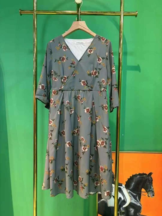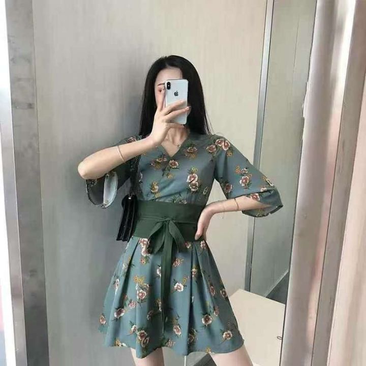 100件左右2025夏季娃娃egg裙法式过膝智熏裙法式桔梗印花雪纺裙,有腰带!尺码S-L,独立包装!全清13.8
