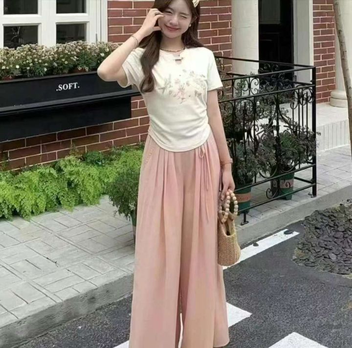 8.8清电商仓回收100条奶芙芙粉色国风山本裤阔腿裤女,...