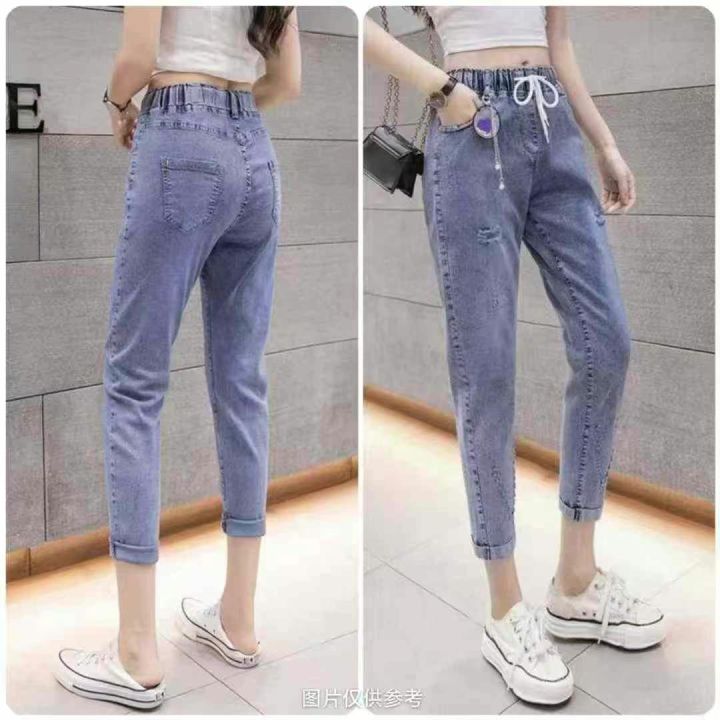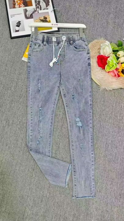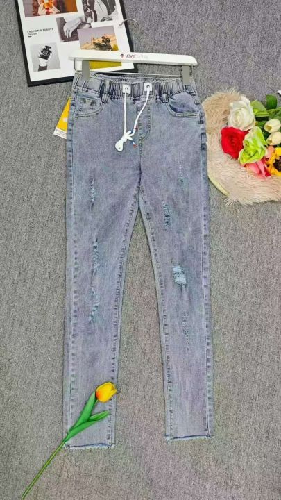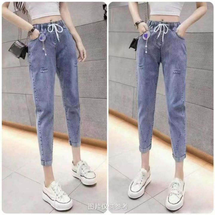 电商仓回收42件原宿风松紧腰带抽绳休闲牛仔小脚裤女,码数28-32。全部独立包装。