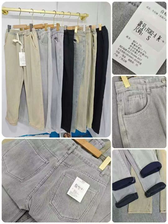 9.9清天猫在售200条美式高街高腰复古水洗加绒加厚牛仔...