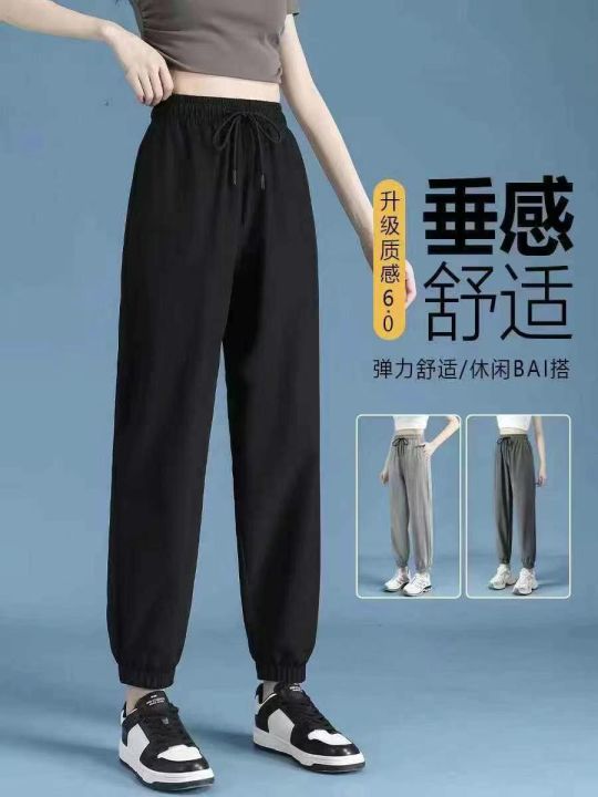 女装夏季休闲冰丝束脚裤,面料冰爽丝滑有弹力,垂感十...
