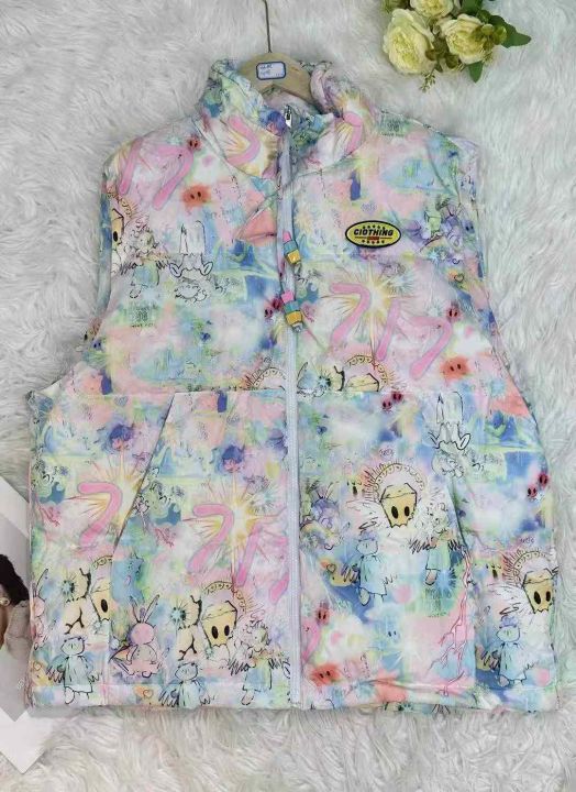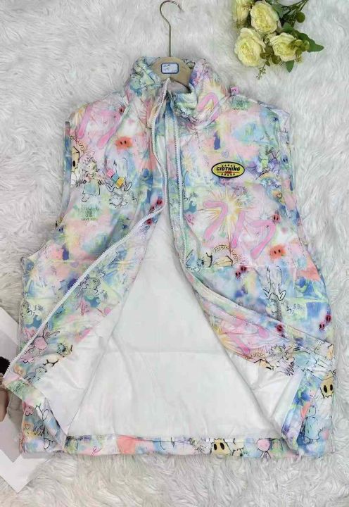 新款减龄彩色满印无袖背心小马甲羽绒服,轻便保暖灵活度高[强],锁温不臃肿,叠穿神器,️内搭毛衣,修饰身材显瘦利落,彩色满印独特小众吸睛,时尚单品,风格多变减龄百搭[色],羽绒服舒服柔软,最低价,100件起,分货29.9