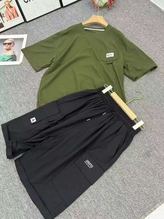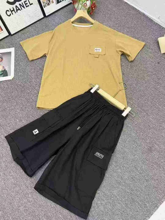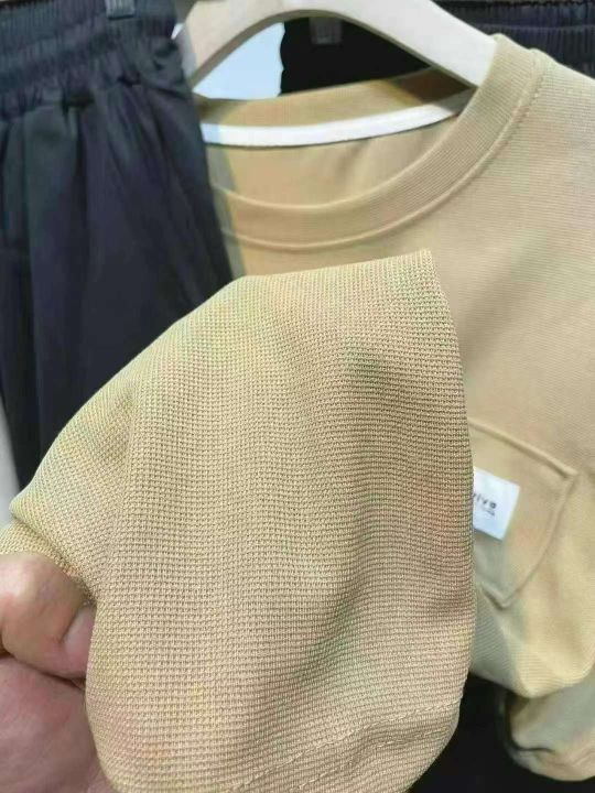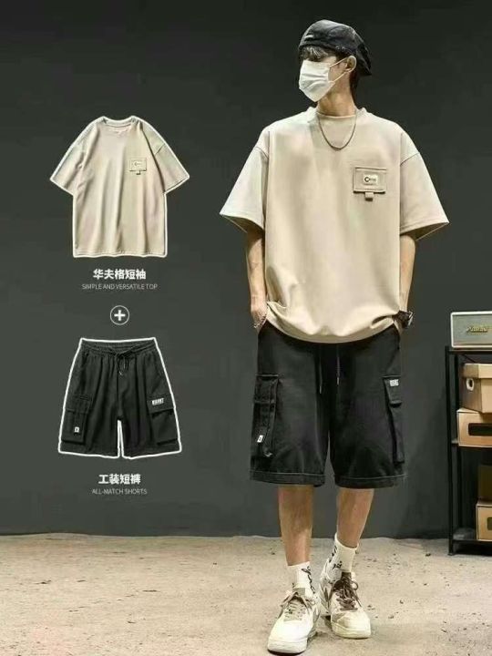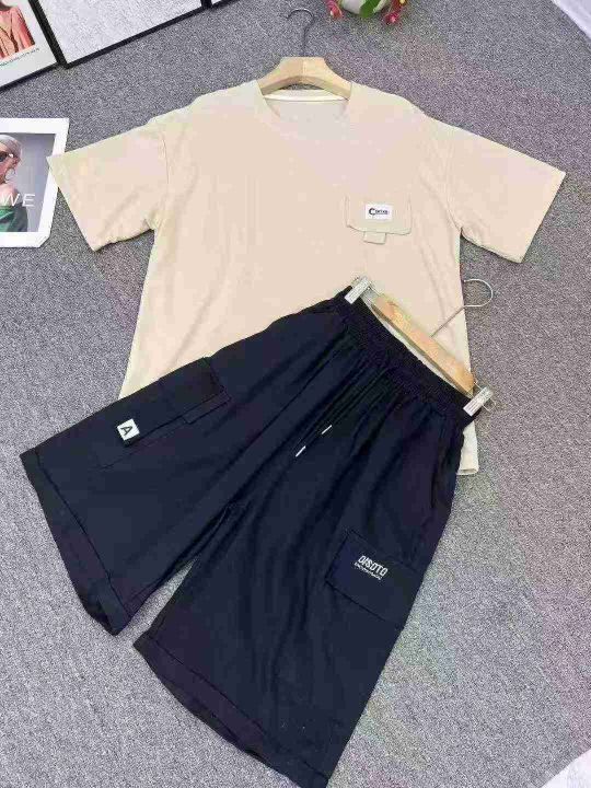 93套高品质夏季男装美式潮牌工装短裤套装,上衣华夫格面料、裤子纯棉洗水棉面料,单款三色,M-2XL,独立包装带吊牌。