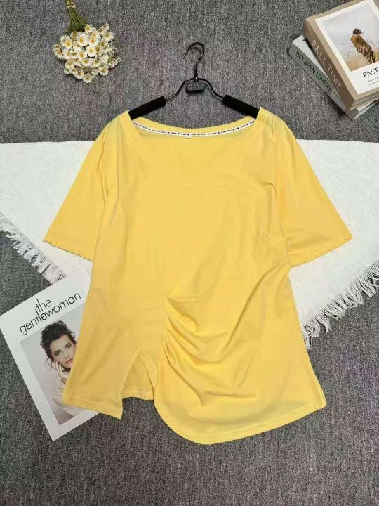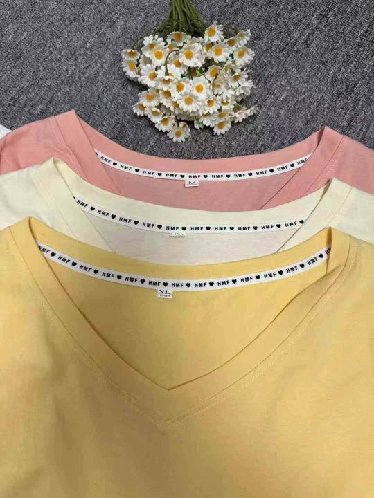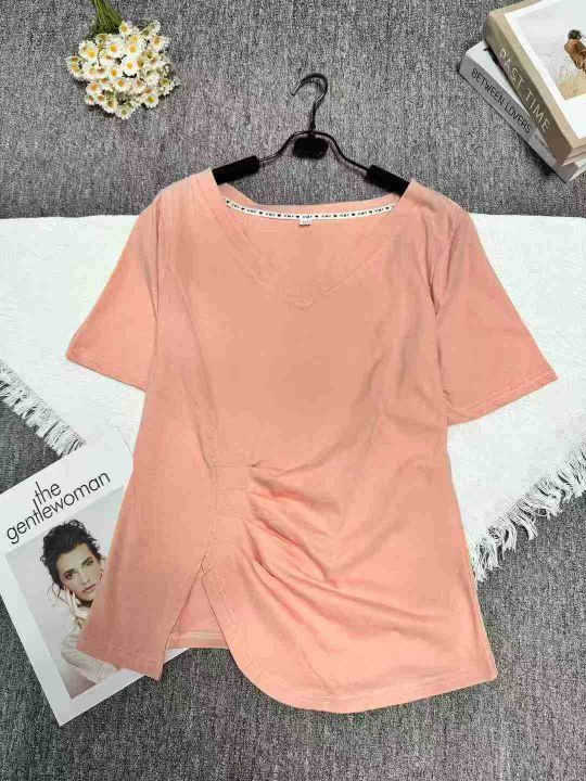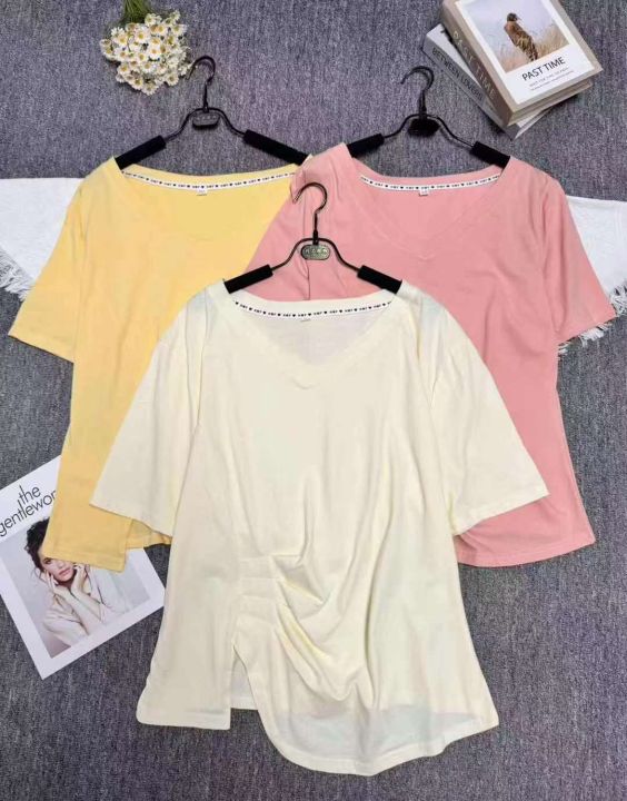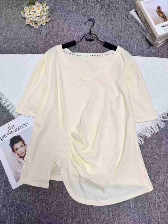 时尚洋气百搭v领褶皱纯棉大版短袖t恤,整款三色,领口有包边,品质好,独立包装,码数m-3xl,数量260件左右,全清5.9,分货➕1