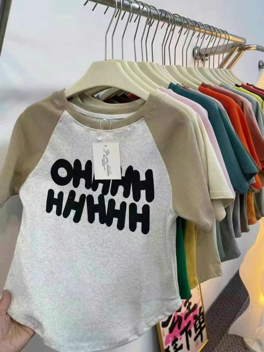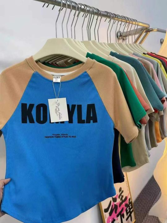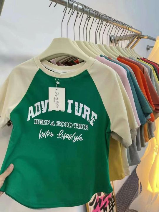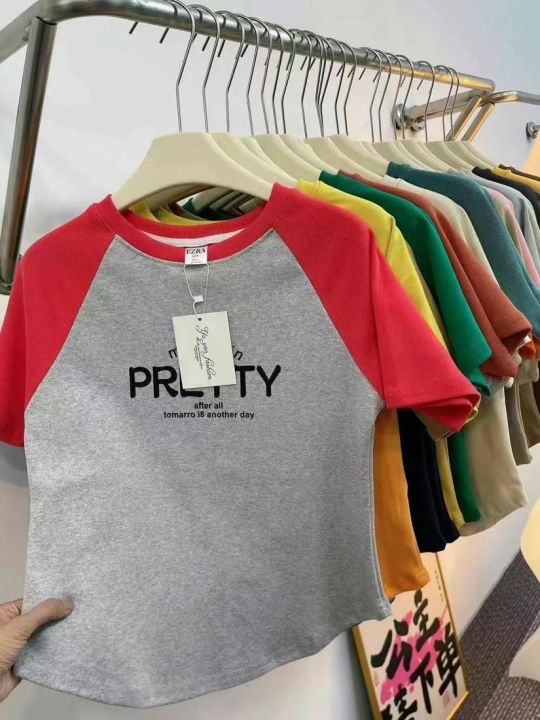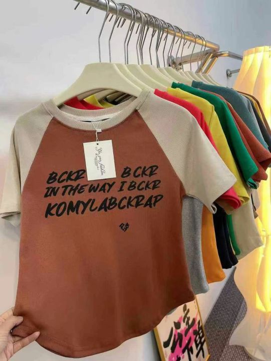 ☕️2025年新款辣妹拼色T,18000件秒杀9.9元,分货+1,80-140斤均码,纯棉质量,美式插肩短袖t恤女新款夏季设计感修身显瘦字母短款上衣