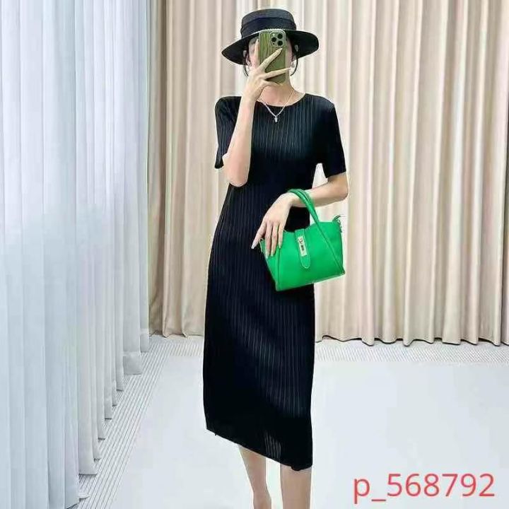 400件三宅高定气质减龄褶皱圆领修身连衣裙,简约大气!均码!原版面料!单款3个颜色,独立包装。全清38.8 Pleated Round Neck Dress فساتين كريب مستديرة_@_@