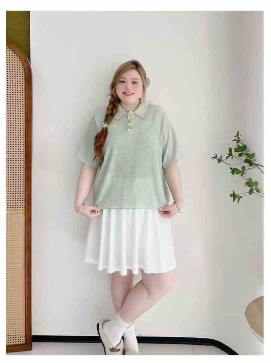 清新少女大码宽松休闲POLO领提花显瘦遮肉学院风减龄短...