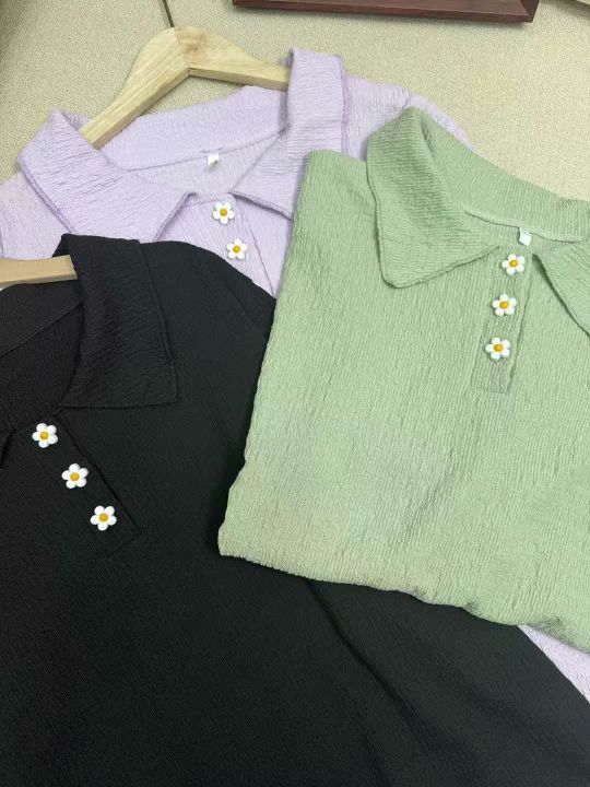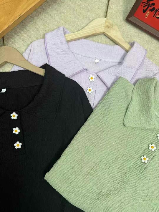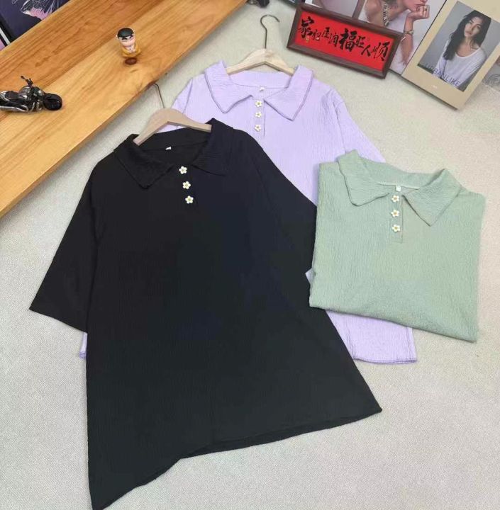 清新少女大码宽松休闲POLO领提花显瘦遮肉学院风减龄短袖T恤·单款三个色三个码220件左右独立包装全清6.8分货加一