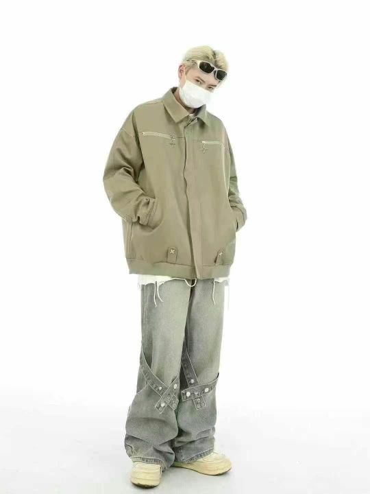 美式复古重工多拉链工装夹克男女同款春秋季超火潮牌休闲大码外套.单款两个色注:浅色为主1-4码独立包装300件左右全清20.8分货加一