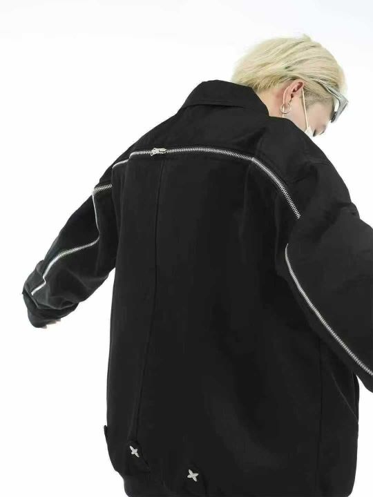 美式复古重工多拉链工装夹克男女同款春秋季超火潮牌休...