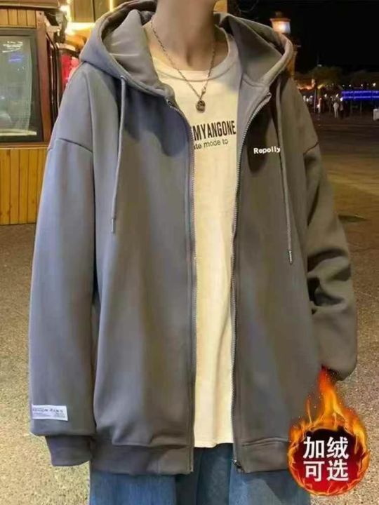 全清18.8,开衫连帽加绒卫衣男秋季冬新款宽...