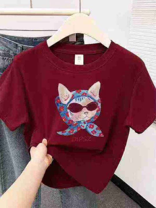 上新全清:9.9一件韩版可爱小众卡通猫印花显瘦百搭T恤,[爱心]100件左右,...