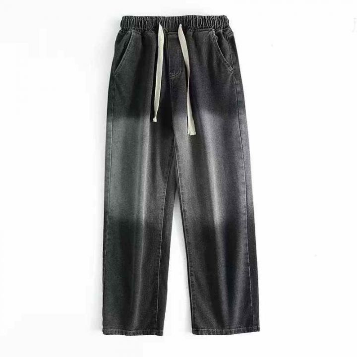 1226条,3个款美式复古直筒渐变抽绳牛仔裤男潮牌街头宽松休闲松紧腰阔腿老...