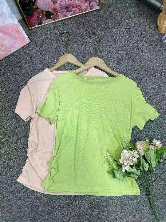 冰丝螺纹显瘦抽皱小蛮腰不规则短袖,侧边有抽皱设计,只有大几百件没抽皱,90穿到140斤,弹力超大,整款多色,独立包装,货品干净,6300件左右,5.5清,分货加1
