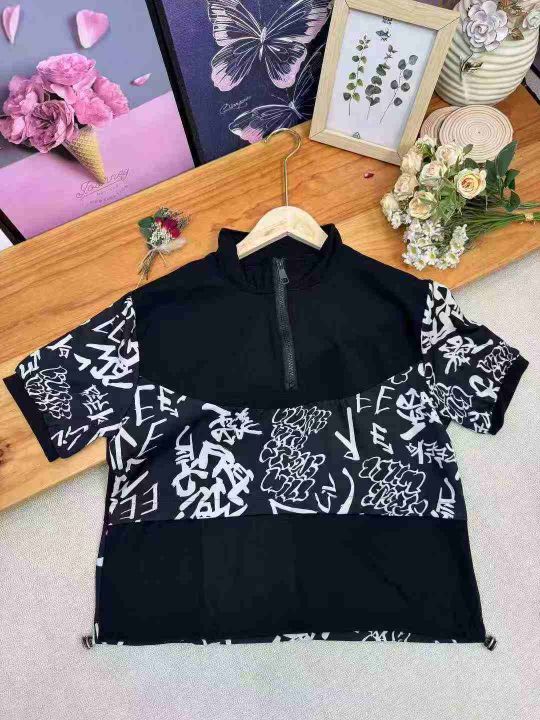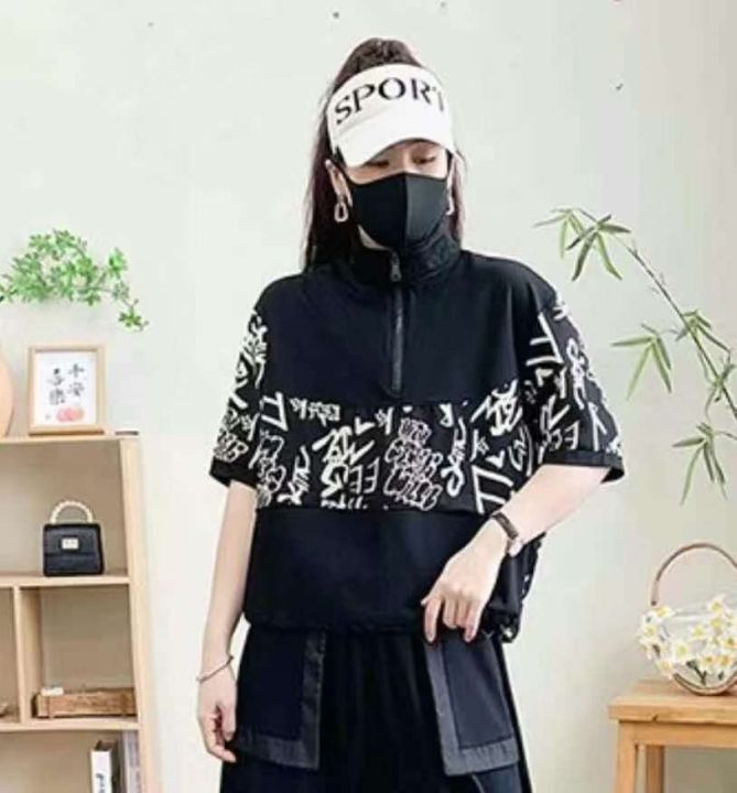 韩版宽松休闲时尚女士拼色立领拉链短袖T恤.单款单色5个码独立包装336件全清6.5分货加一