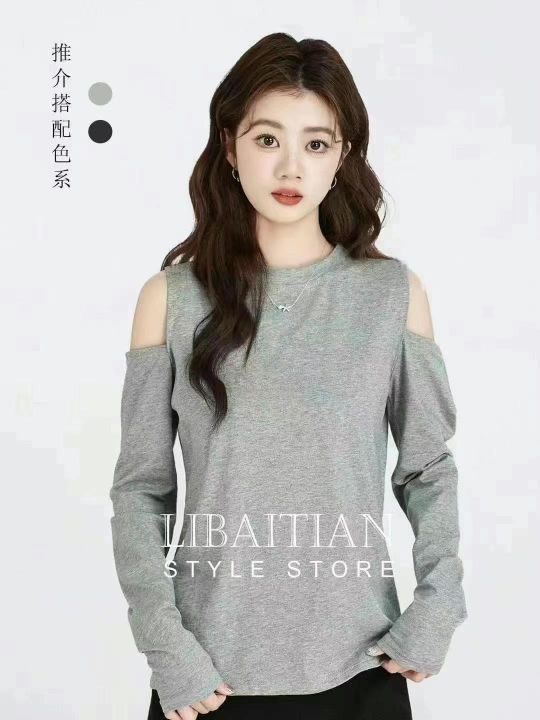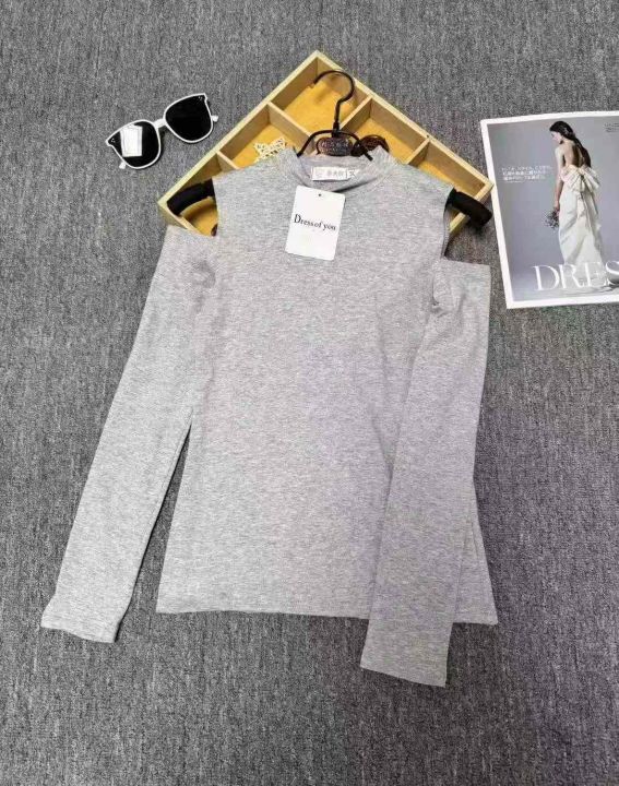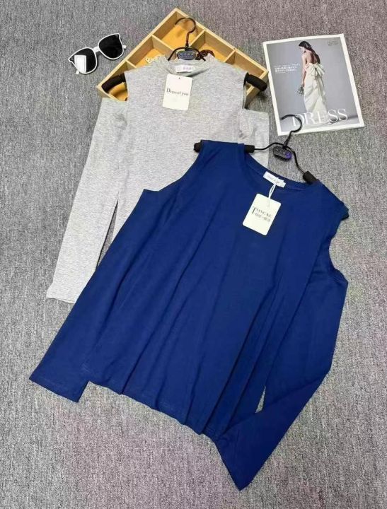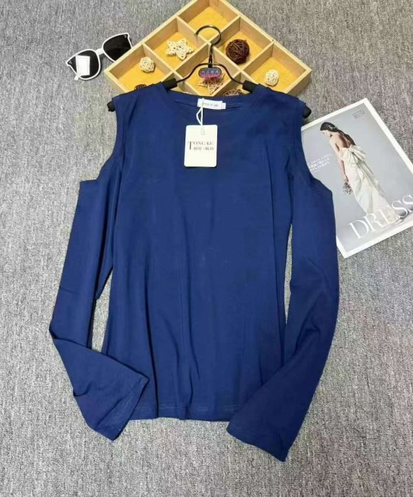 350件左右网红性感露肩长袖百搭长袖上衣,图片款,蓝色多,纯棉面料品质好,有独立包装带吊牌