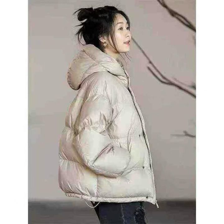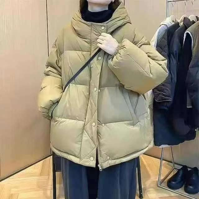 ☕整款加厚连帽棉服1080件全清28.8 分货29.9元,码数M到XXL,独立包装,大货黑色多,卡其 杏色少。法式连帽长袖保暖棉服女士冬季新款韩版宽松冬季加厚时尚面包服外套爆款