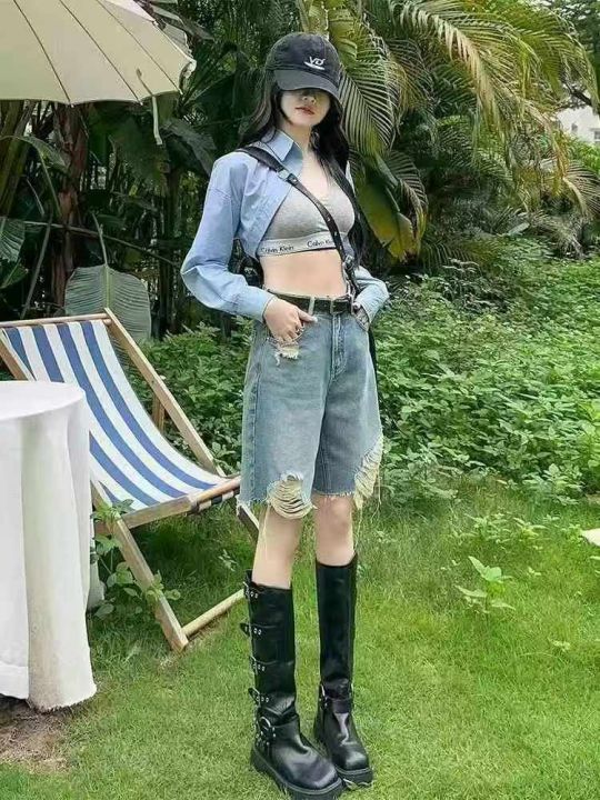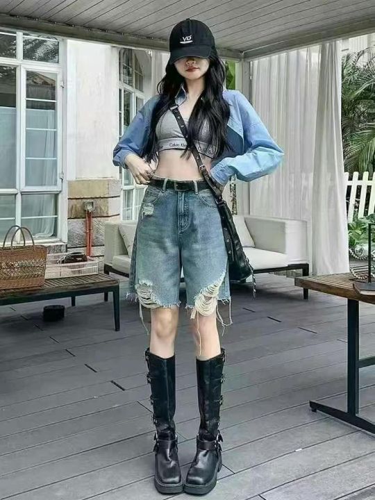 韩国东大门品牌O&H ☕️100条全清10.8元,码数S M L 正品独立包装吊牌,蓝色牛仔短裤女夏新款设计感破洞高腰宽松显瘦牛仔五分裤子