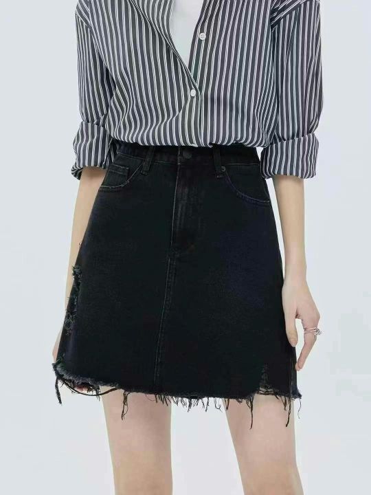 复古牛仔短裙☕️195条全清8.8元,码数S到XL,独立包装,新款显瘦黑色不规则a字牛仔半身裙女