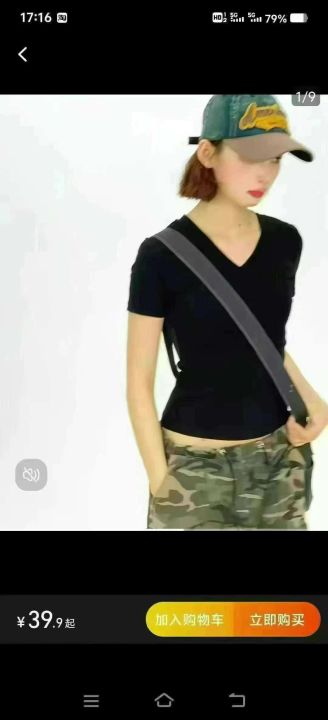 4.8元,靓妹纯欲风女百搭修身版V领辣妹短袖T恤,面料柔软亲肤有弹力,770件,1-4码,独立包装吊牌,全清4.8元,分货+0.5