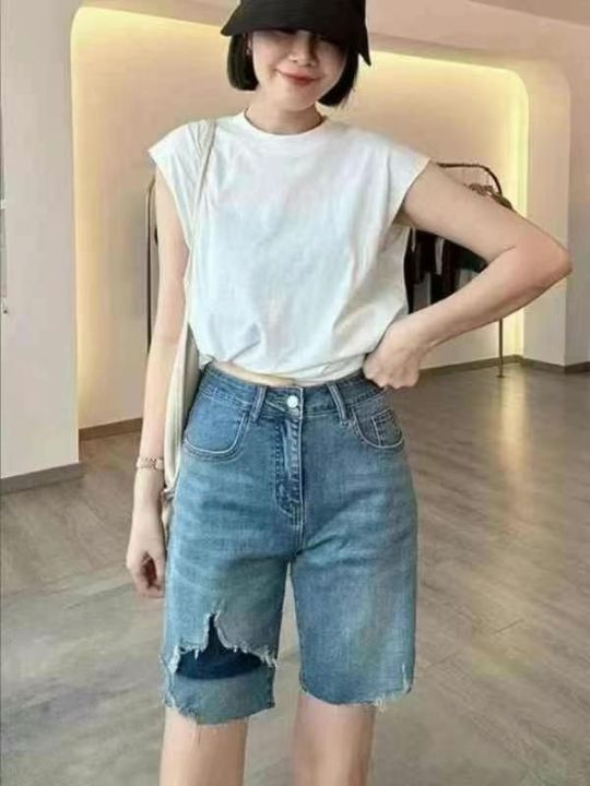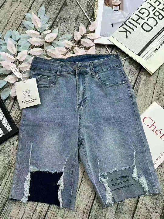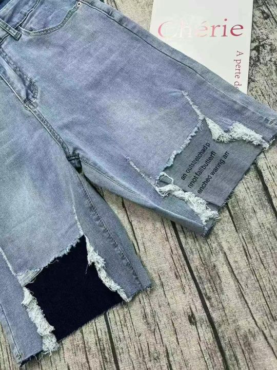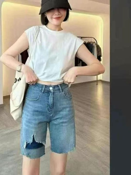 弹力牛仔五分裤☕️50条全清7.8元,码数S到XL,独立包装,夏季新款高腰破洞牛仔短裤宽松显瘦牛仔中裤五分裤