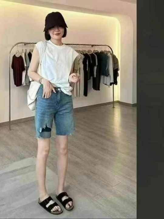 弹力牛仔五分裤☕️50条全清7.8元,码数S到XL,独立包装,夏季新款高腰破洞牛仔短裤宽松显瘦牛仔中裤五分裤
