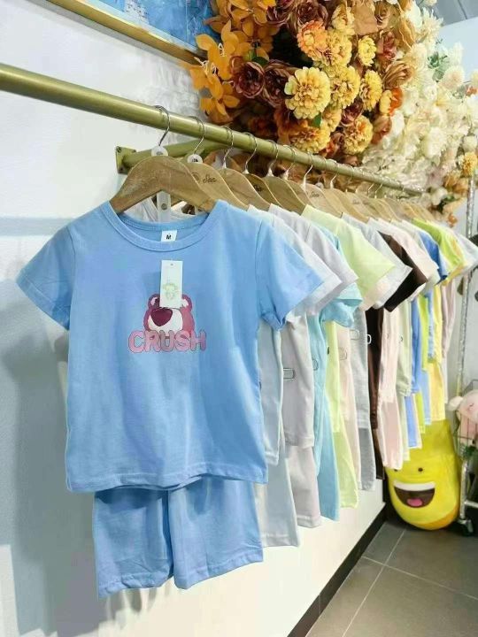 童套装[太阳]全清价6.8、3800套,码数M-XL、适合2-6岁孩童、纯棉糖果色宽松时尚休闲运动短袖短裤童套装,面料柔软舒适透气,颜色图案多,不仅限图片视频款,上身效果巨巨好看爱、面料100%纯棉、超低价[哇]太划算啦[666]全部全新独立包装,带吊牌配小份100/200件起多花色混配7.5