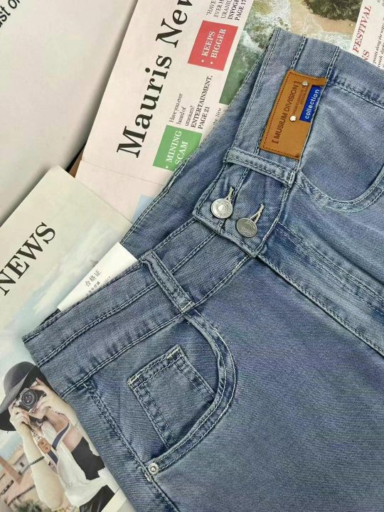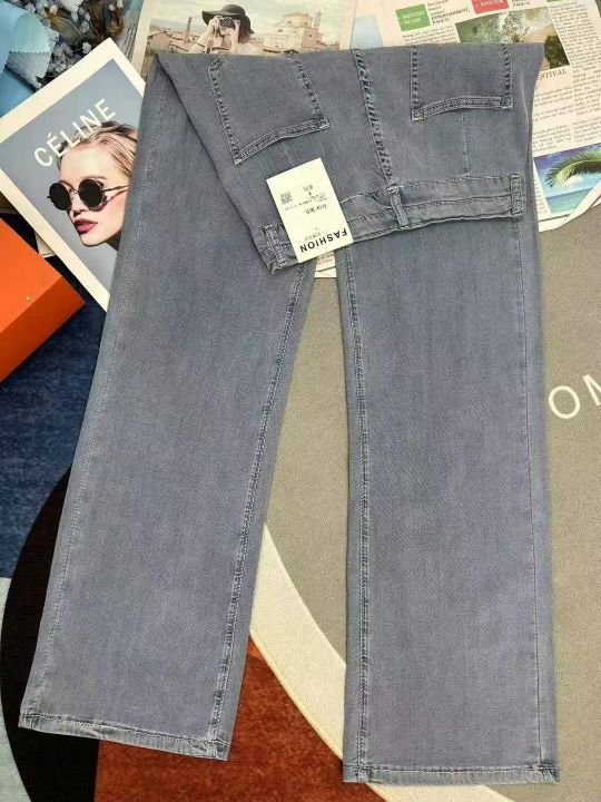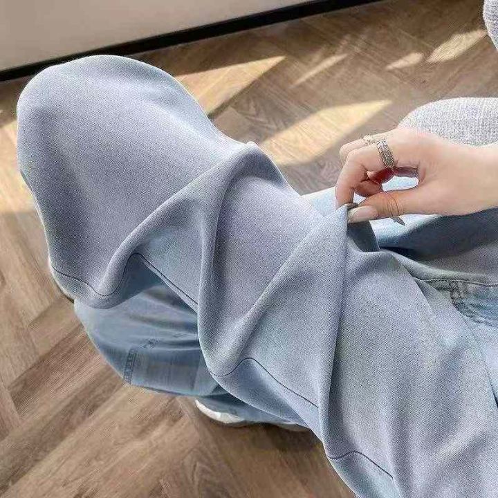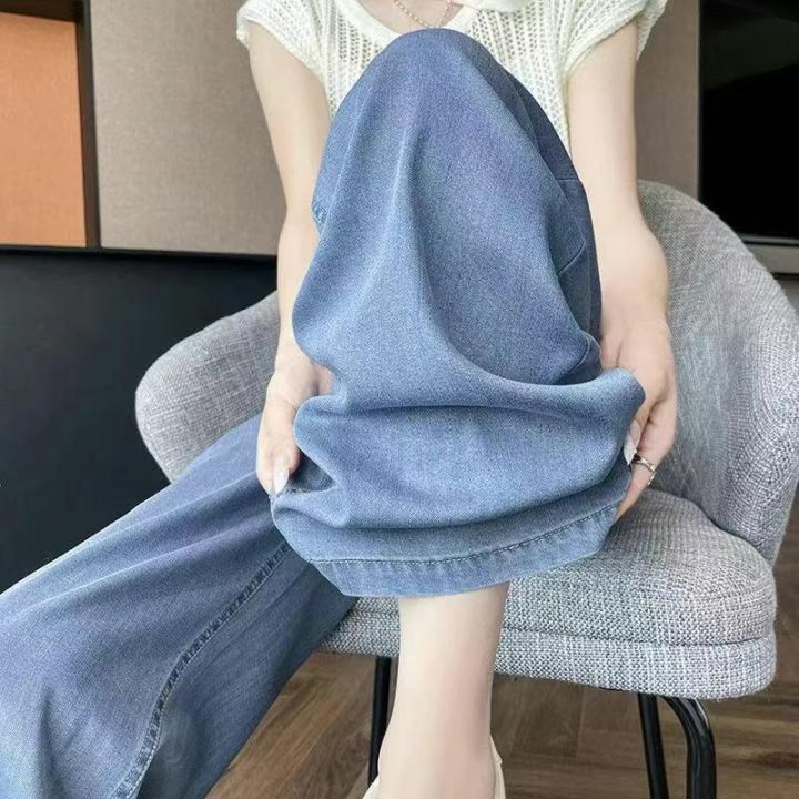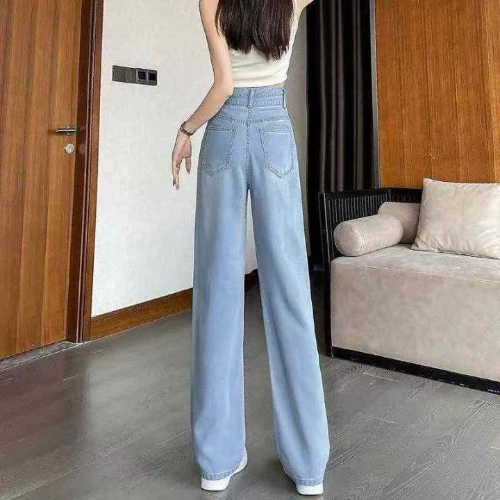 天丝薄款高腰直筒拖地阔腿牛仔裤,单款单色,独立包装...