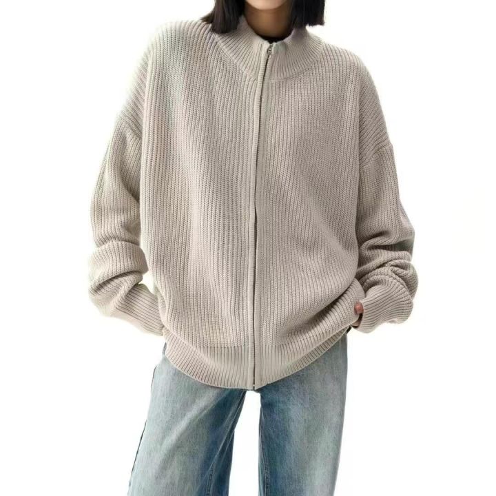 美式慵懒风高街潮流男女款毛衣粗线针织衫秋冬厚款拉链...