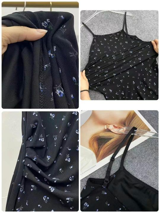 法式碎花吊带连衣裙140件8.8,面料舒适有弹力,褶皱设...