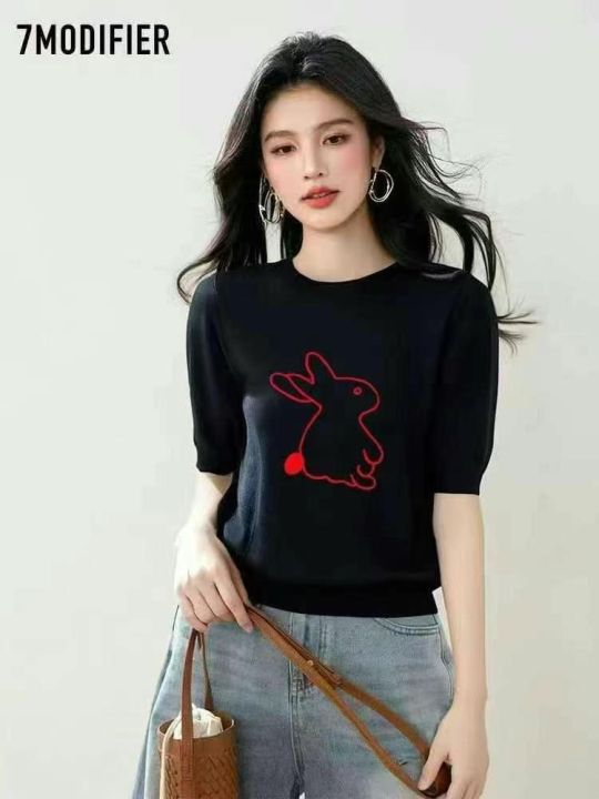 2025夏季新款圆领字母撞色百搭时尚洋气显瘦女装短袖针织衫,574件,原厂原包装,全清5.9元一件!!