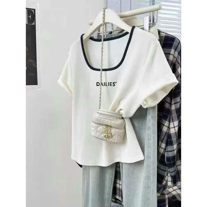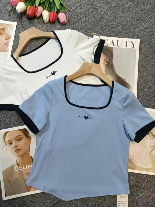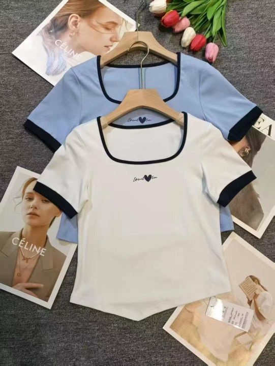 品牌纯欲风撞色U领纯棉短袖,[爱心]50件左右,码数S-XL,穿80斤-130斤,万佳档口新货,原包装️无瑕疵,[庆祝]实体店高品质
