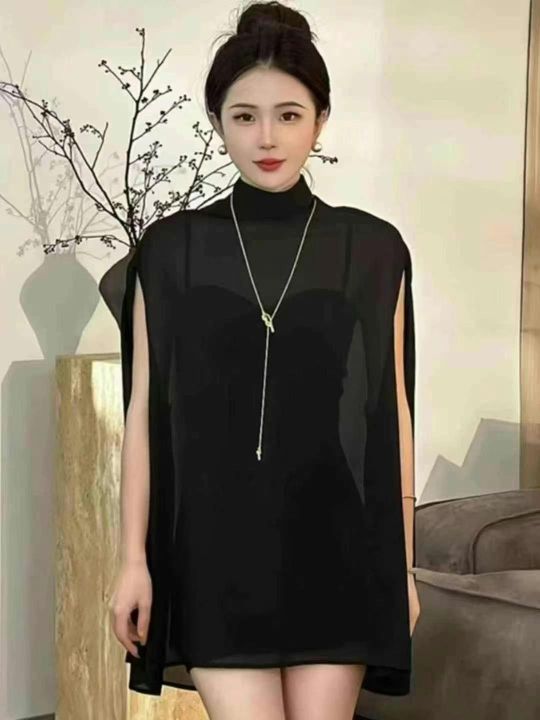 法式高级感微透网纱防晒雪纺罩衫,数量408件,单款黑色,码数1-2-3-4-5(S-2XL),独立包装,分货➕1随机配