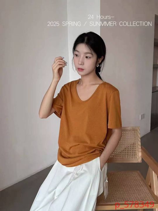 编号:[13501] ¥5.8元 女装/女士服装 上衣 夏天 短袖卫衣/T恤 韩版丝光棉T恤纯棉面料V领短T单款2色S一3XL全部独立包装带吊牌Korean Style Silk Cotton T-Shirtتي شيرت قطني حريري بالستيل الكوري 库存:123