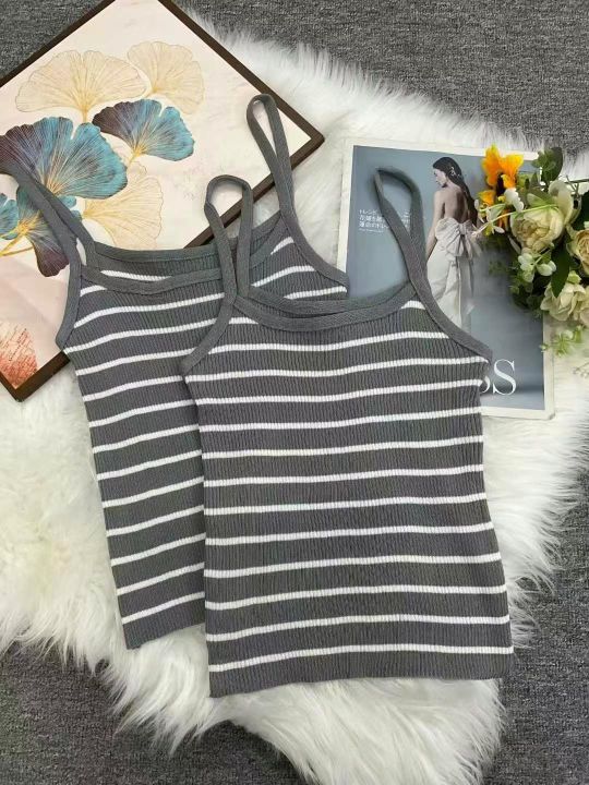 夏季新款法式甜辣别致撞色条纹针织吊带背心,独立包装...