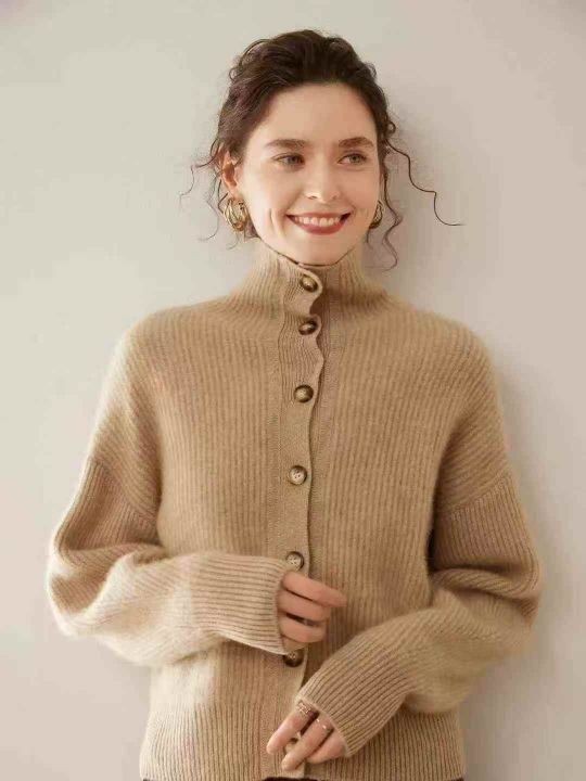 全清13.8,奥莱专柜高品质针织衫女100纯毛衣高端立领宽松加厚针...