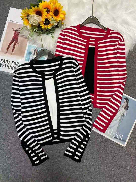 秋季新品撞色条纹包芯纱针织毛衣开衫+针织吊带背心2件套,独立包装,均码面...