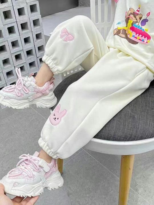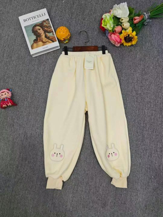 实体供应链回收80条纯棉刺绣小兔子加婴儿绒童裤,码数80-130。纯棉A类母婴级面料,吊牌价299,质量款式超级好,带吊牌独立包装。