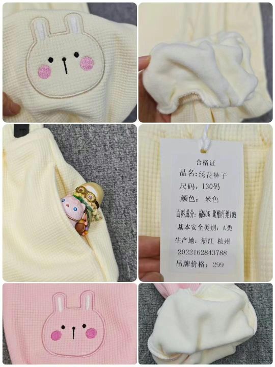 6.8清实体供应链回收80条纯棉刺绣小兔子加婴儿绒童裤...