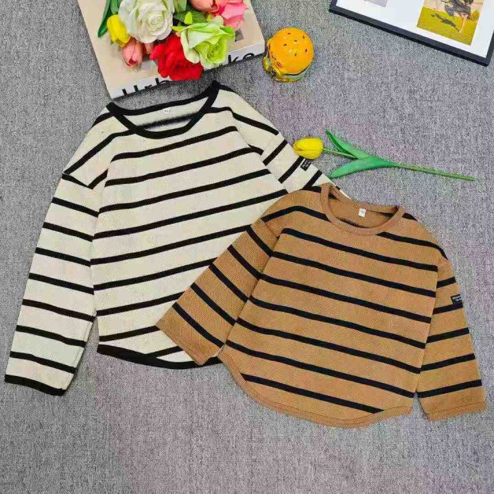 2.9清电商仓回收210件童装条纹加绒毛衣,码数80-130。...