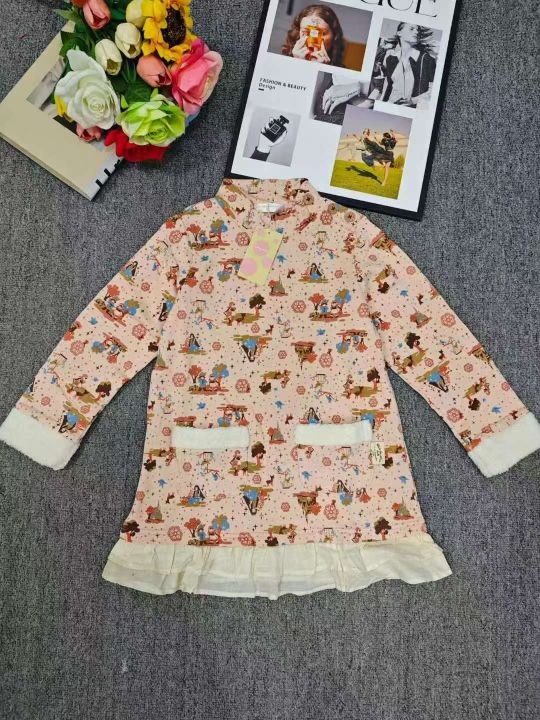 工厂回收980件秋冬儿童纯棉卡通印花加绒连衣裙,码数80-130。100%纯棉,布料柔软,手感舒适,质量特别哇塞。带吊牌独立包装。