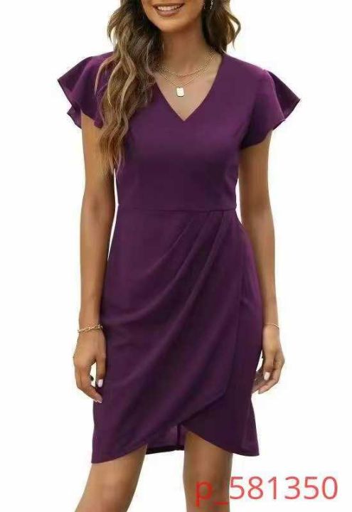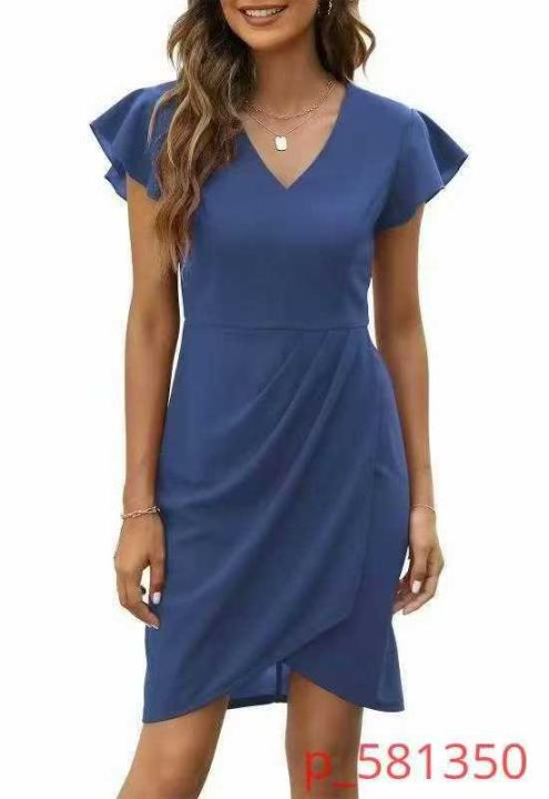 亚马逊跨境外贸气质优雅夏季新款荷叶袖不规则连衣裙礼服裙DRESS裙,高品质,面料舒服柔软,112条,S-XL,独立包装 Elegant Summer Dress with荷叶袖 فساتين أنيقة صيفية_@_@