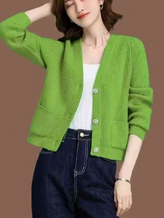 早秋新款V领宽松慵懒风针织毛衣开衫,独立包装,均码面料柔软舒适,150件左...