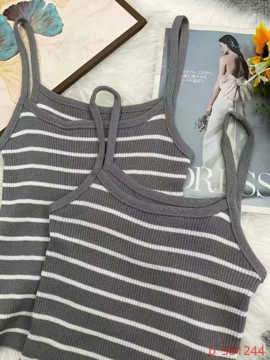 夏季新款法式甜辣别致撞色条纹针织吊带背心,独立包装,均码面料柔软舒适弹力大,货品新净,高品质,680件,腾仓库全清3.9元亏本处理!分货加一! French style striped vest سترة مخططة على الطراز الفرنسي_@_@