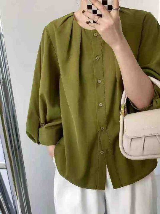 压褶简约衬衣111件7.9,灯笼袖别致茶系上衣,下摆弧形设计,简约宽松版,码...