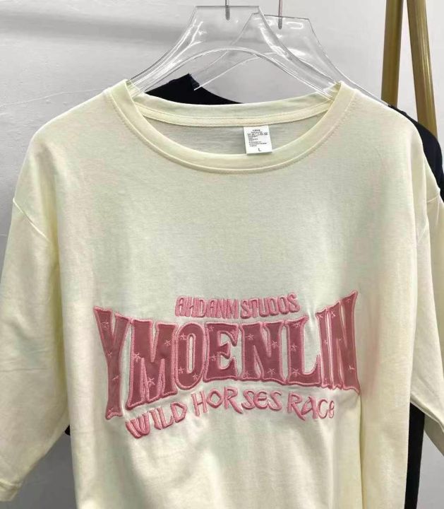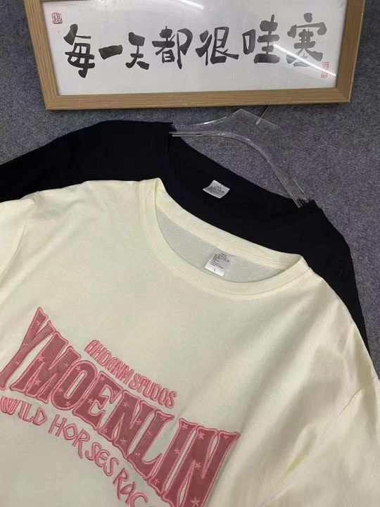 纯棉情侣款短袖395件8.8,面料舒适透气,植绒刺绣字母...