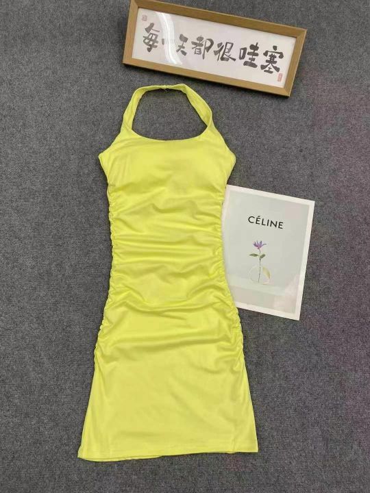 性感挂脖吊带连衣裙63件6.5,面料柔软有弹力,褶皱设...