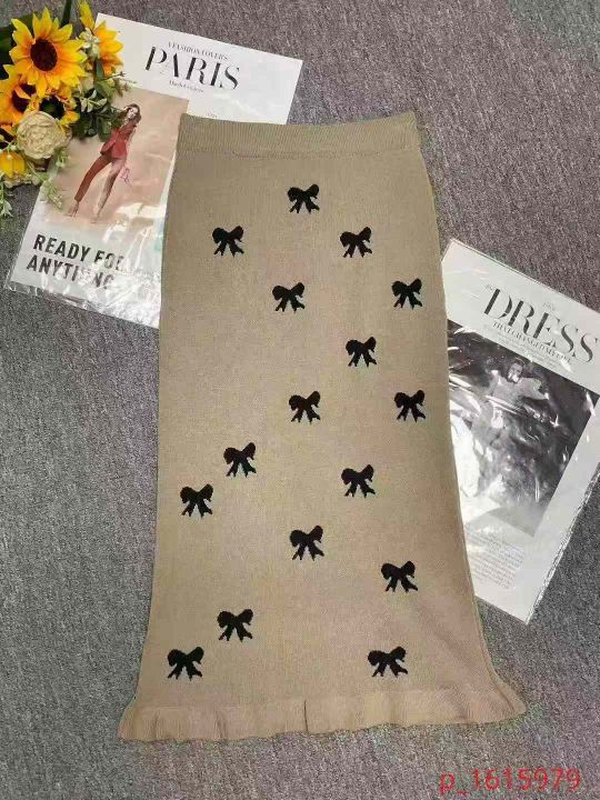 秋冬新款温柔荷叶边软糯甜美高腰显瘦垂感针织毛衣半身长裙,独立包装,均码...