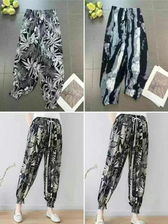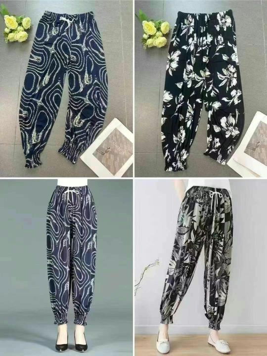 下身九分裤[太阳]全清7.8,4000件、均码。 中老年女裤夏季冰丝薄款高弹力灯笼裤妈妈大码束脚九分高腰宽松印花裤子,抽绳松紧腰,面料柔软舒适,腰部有弹力松紧,不挑人,非常适合摆地摊、早市/夜市摆地摊[666]这个性价比真的太划算啦[强]垂感十足,独立包装、100/200件起多款混配8.8