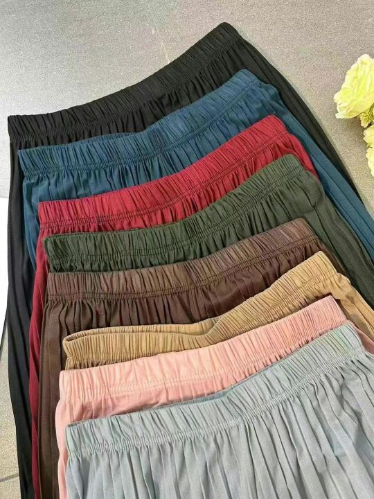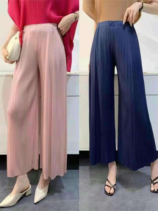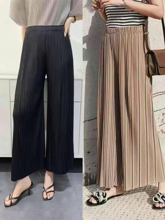 下身九分裤[太阳]全清8.5、3900件,夏季新款冰丝垂感凉凉百褶阔腿直筒宽松九分裤,面料柔软,垂感十足[色],腰部有弹力松紧不挑人,这个性价比直接拉满✅高品质,全部全新独立包装,均码,防水袋发货,100/200件多色混批8.8